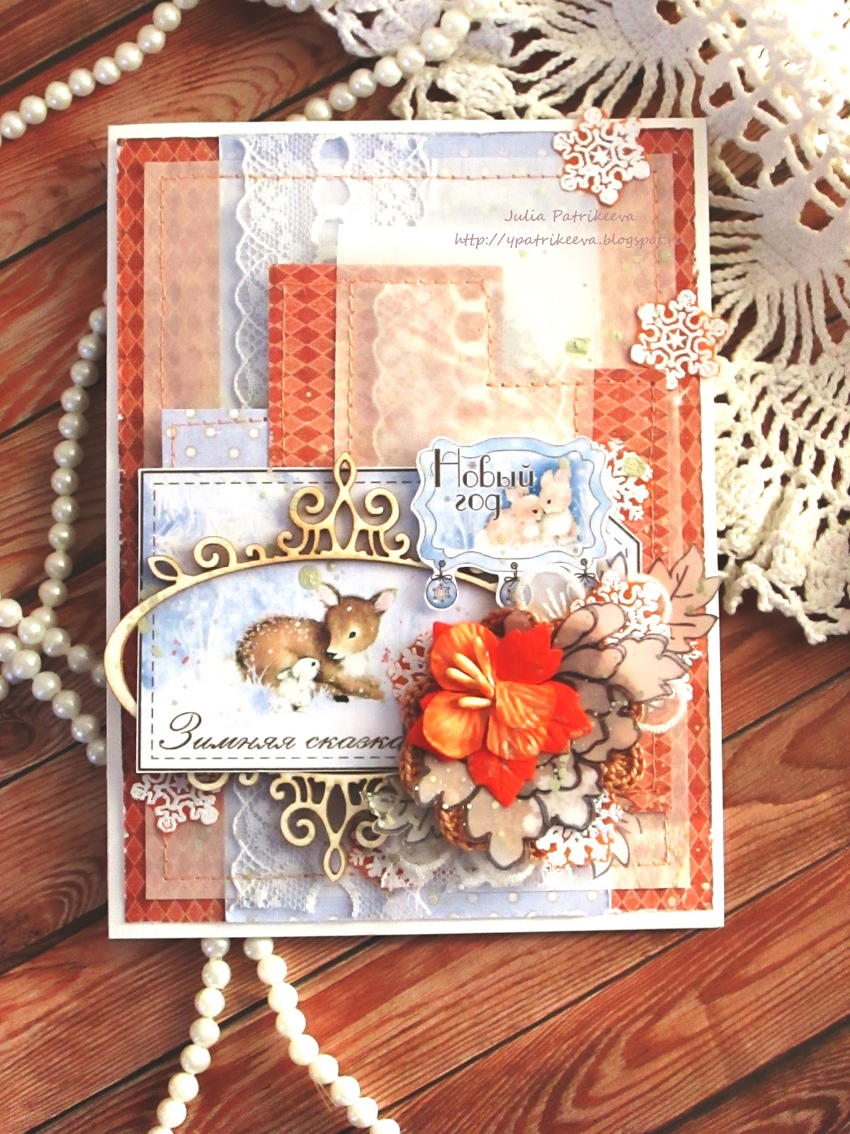 Для ее создания использовала бумагу от Prima коллекции Londonerry, зимние высечки от ТМ Скрапбург - какие же они сказочные! Стоит лишь подобрать нужную бумагу к ним и они заиграют) Также есть красивущий чип от ScrapBox, немного кружева, вязаный цветочек, снежинки-отштамповки, и воздушная калька... Волшебство приближается! Хорошего настроения и вдохновения!