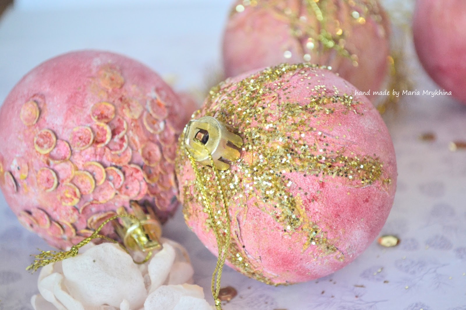 Но вам не надоело еще отдыхать? Мне вот уже захотелось немного окунуться в творчество. Тем более у нас такое классное задание! Я просто обожаю использовать золото в своих работах, поэтому с большим удовольствием сделала работу именно с этим ОЭ. Новогодняя тематика все еще не отпускает и вот у меня готова еще одна партия шаров, которые разлетелись как горячие пирожки))